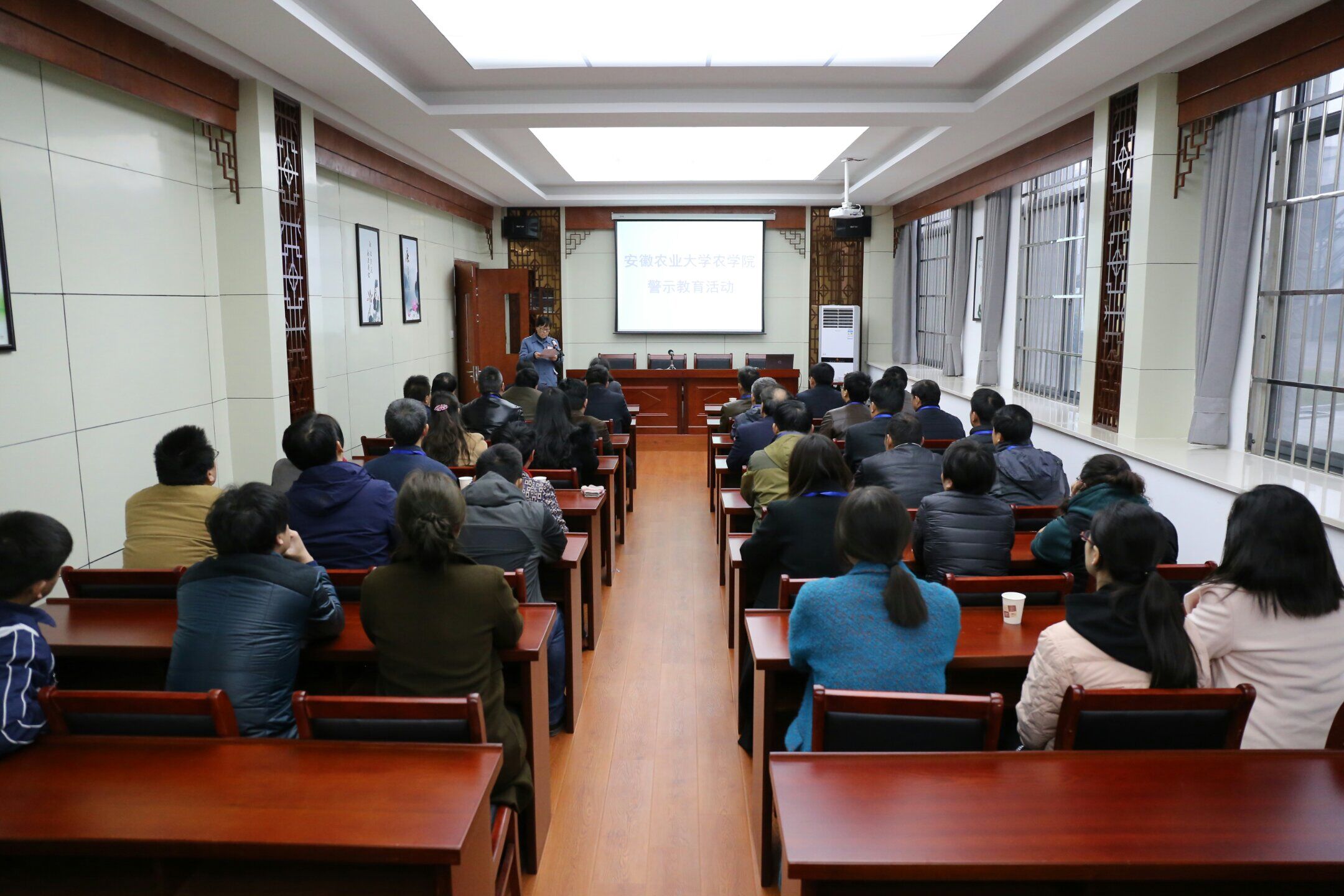本网讯 为进一步加强学院干部廉洁自律意识,筑牢拒腐防变的思想防线,11月29日下午,农学院组织学院教职工36人赴安徽省女子监狱开展党风廉政建设警示教育活动,学院党委书记汪凤莲、院长李金才、党委副书记鄢高翔、副院长常成、武立权参加了警示教育。
