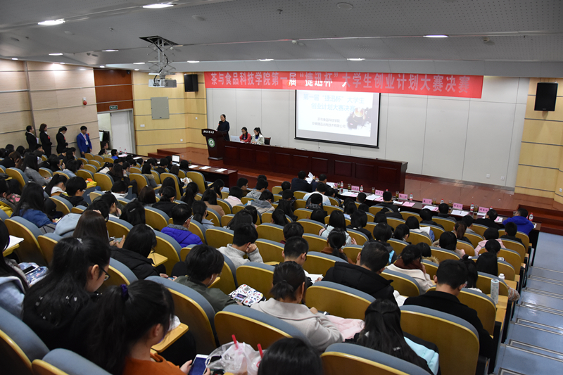 本网讯11月29日晚,茶与食品科技学院第一届“捷迅杯”大学生创业计划大赛决赛暨颁奖仪式在图书馆第二报告厅精彩举行。10个团队经过2个多小时的现场陈述和评委提问环节,最终,来自2015级茶学专业卢子涵的“铭记茶庄”项目摘得桂冠,获得4000元项目扶持资金;“安徽致新食品有限公司”、“安饮食品有限责任公司”项目荣获二等奖和奖金3000元扶持;“懂茶文化贸易有限公司”、“LOLO共享厨房”、“茶叶鲜活技术服务有限公司”等项目荣获三等奖和奖金2000元扶持;“格润吸附剂工作室”等四个团队荣获优秀奖。