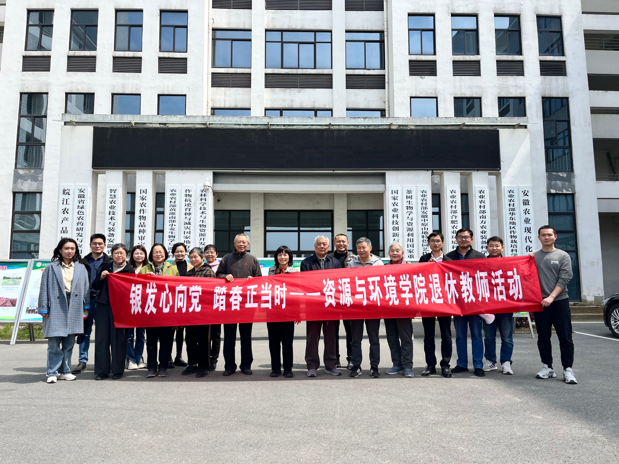 本网讯 阳春三月,春暖花开,柔风和畅,为丰富老同志们精神文化生活,积极倡导绿色健康生活理念,3月31日上午,资源与环境学院组织退休教师赴三河古镇、皖中综合试验站开展“银发心向党,踏春正当时”主题实践活动。