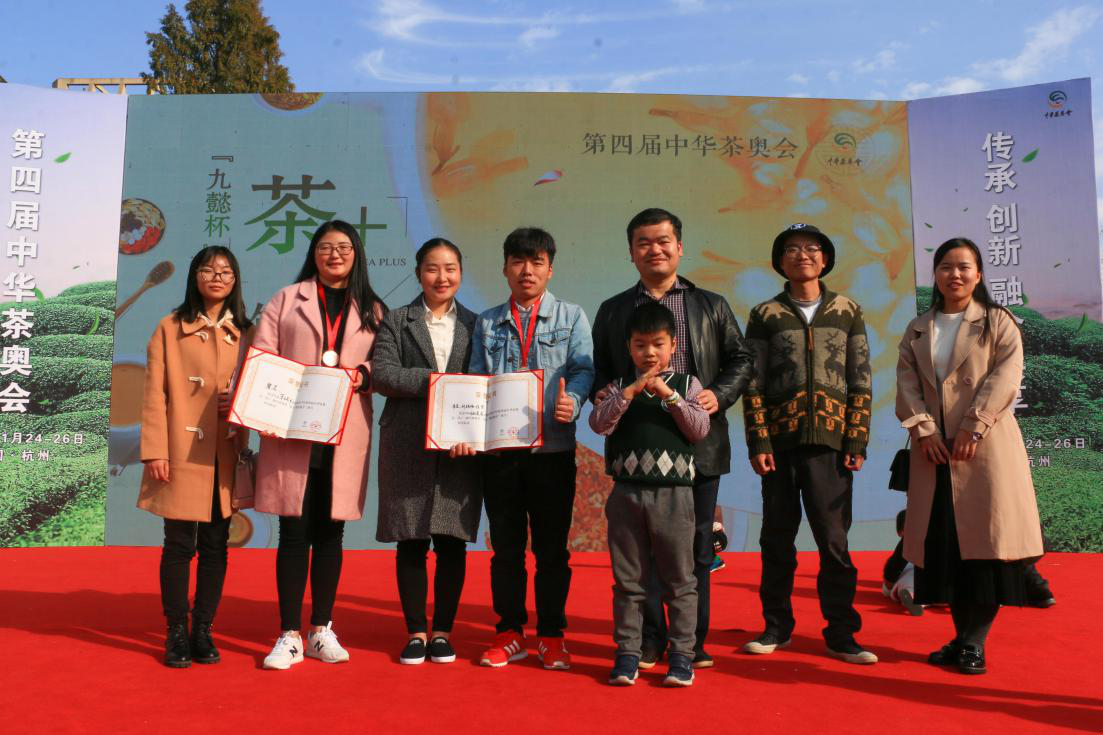 本网讯第四届中华茶奥会于11月25—26日在杭城茶都名园举行。经过两天的激烈角逐于26日下午落下帷幕。安农大代表队在我校刘政权老师的带领下,通过以赛代训方式提升学生的实践能力和创新思维,在与来自国内外茶人们同台竞技中,我校学生表现优异,荣获多项荣誉。其中,朱尧、刘艳艳、伍赟的参赛作品《开到荼靡》与朱晓凤、蒋菁云的参赛作品《陌上花开》分别在“茶+”调饮赛中荣获银奖和铜奖,陶勐的摄影作品在茶摄影比赛中荣获铜奖。