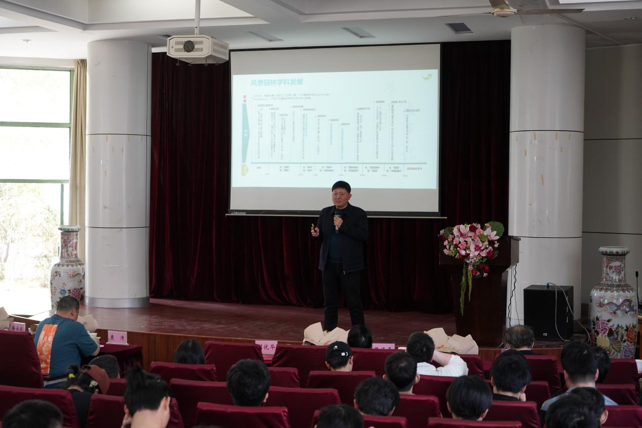 随后,胡优华、袁涛分别做校友专场报告。胡优华从学科发展和专业维度升级、高质量发展下的风景园林、风景园林新时代人才发展观等三个方面,对新时代风景园林行业前景进行了系统全面的介绍。他用精炼的语言介绍了新时代风景园林所面临的百年未有之大变局,对学弟学妹们提出政、产、学、研、用五个要求,为园林学子指明了方向。
