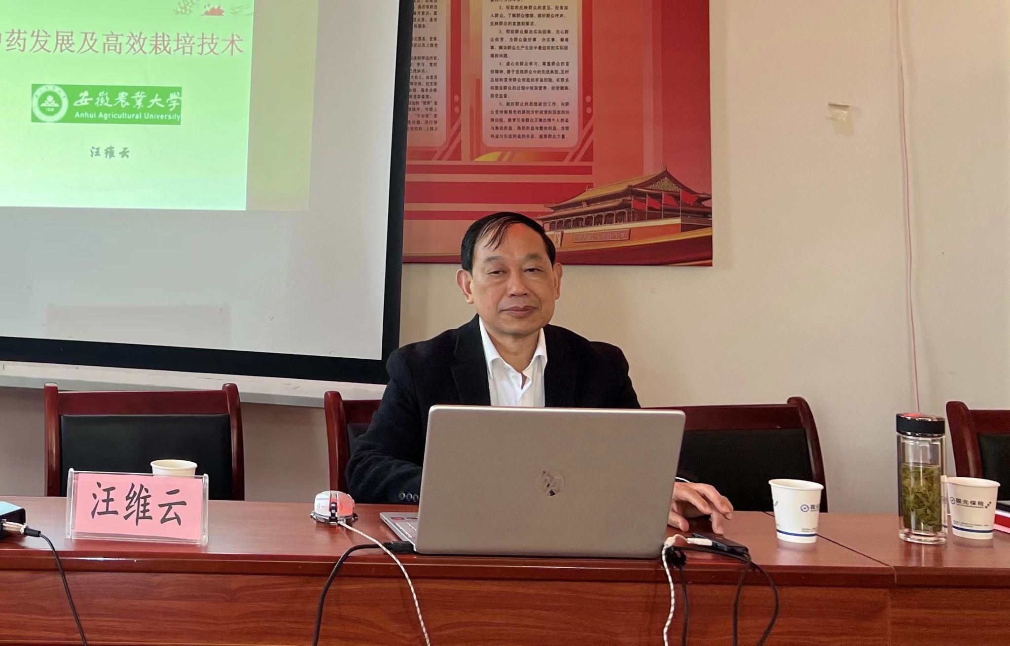 调研组一行观摩马庙村中药材种植现场。我校民革会员汪维云教授应邀对上窑镇各乡镇、村负责人和部分村民进行了中药材的技术培训。对大通区开展中药材种植的可行性,马庙村适合栽培的中药材品种及芍药、半夏的栽培技术,特别是生长期的田间管理进行了详细的分析和讲解。培训受到了群众的热烈欢迎和高度评价,大通区政府还向汪维云颁发了技术顾问聘书。