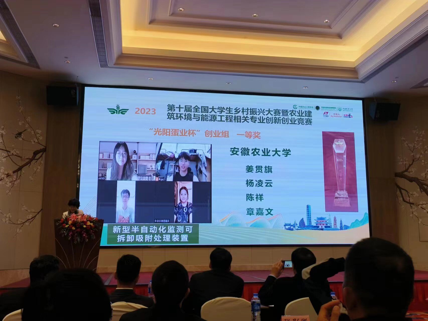 其中,由王笑宇老师指导,陈帅男、张圣斐、徐奕丹三名同学参加的创新类指定项目《基于混沌粒子群PID控制和嵌入式智能耦合响应的温室温控系统研究》,由孔洁老师指导,姜贯旗、杨凌云、陈祥、章嘉文四名同学参加的创业类项目《新型半自动化监测可拆卸吸附处理装置》分获一等奖。