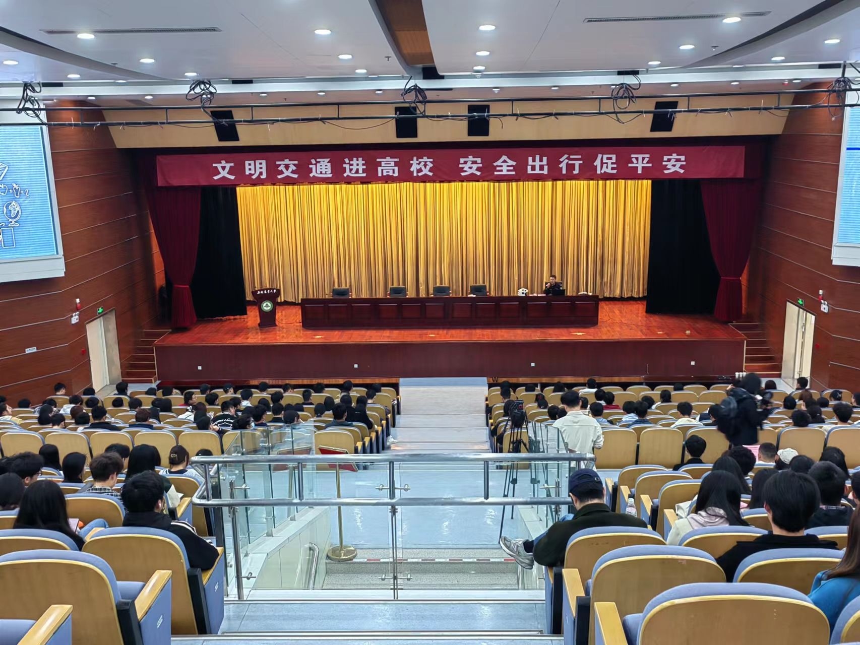 在图书馆第一报告厅内,交警支队蜀山大队三级警长户思远围绕酒驾、交通安全知识、规范行车、《安徽省电动车管理条例》等四个方面内容进行深入阐述,引导学生自觉规范安全出行行为,300余名学生班长听取了报告。
