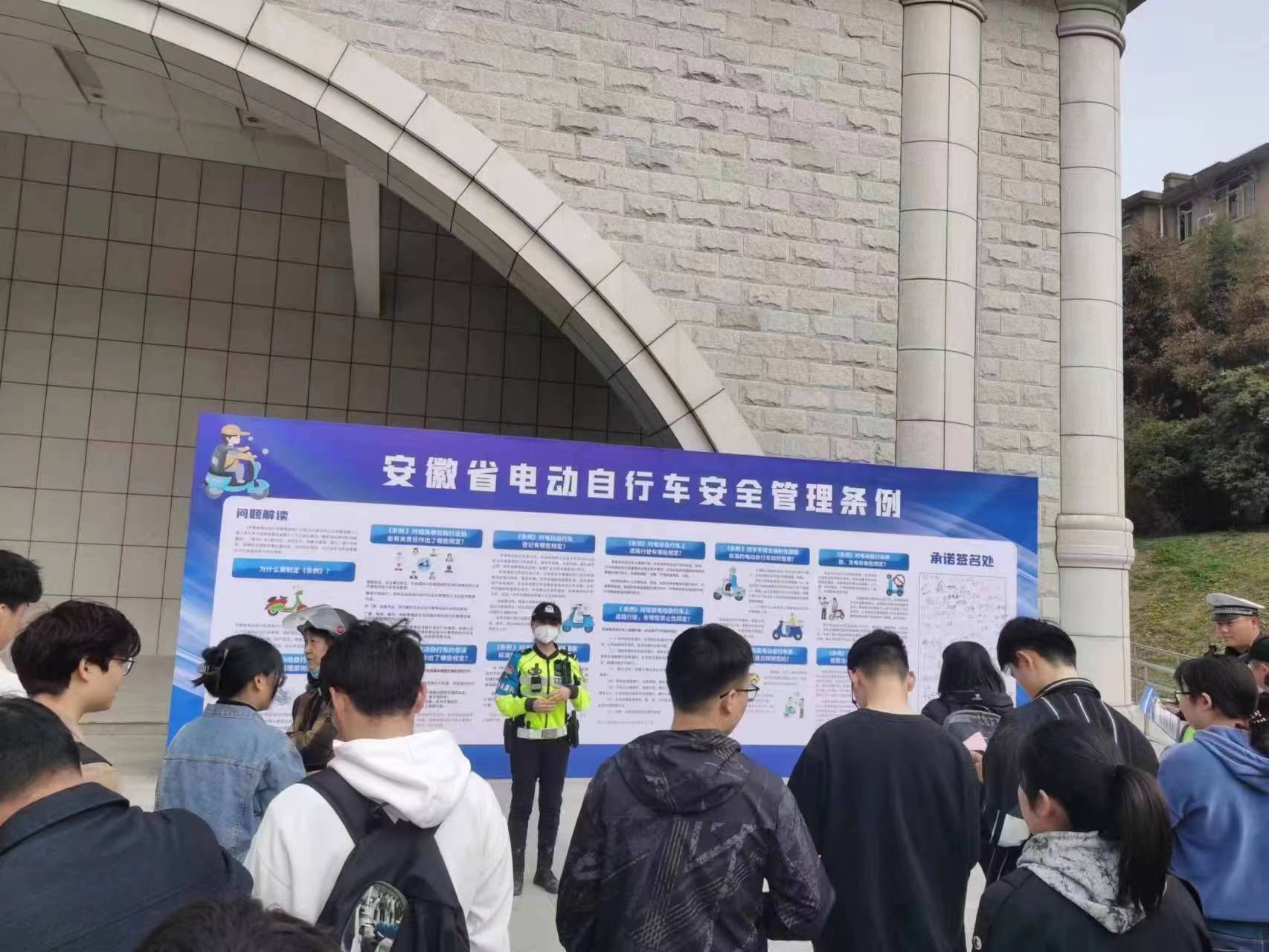 本网讯 3月29日下午,我校联合合肥市公安局交警支队蜀山大队在校园内开展主题为“文明交通进高校、安全出行促平安”的交通安全专题教育活动。