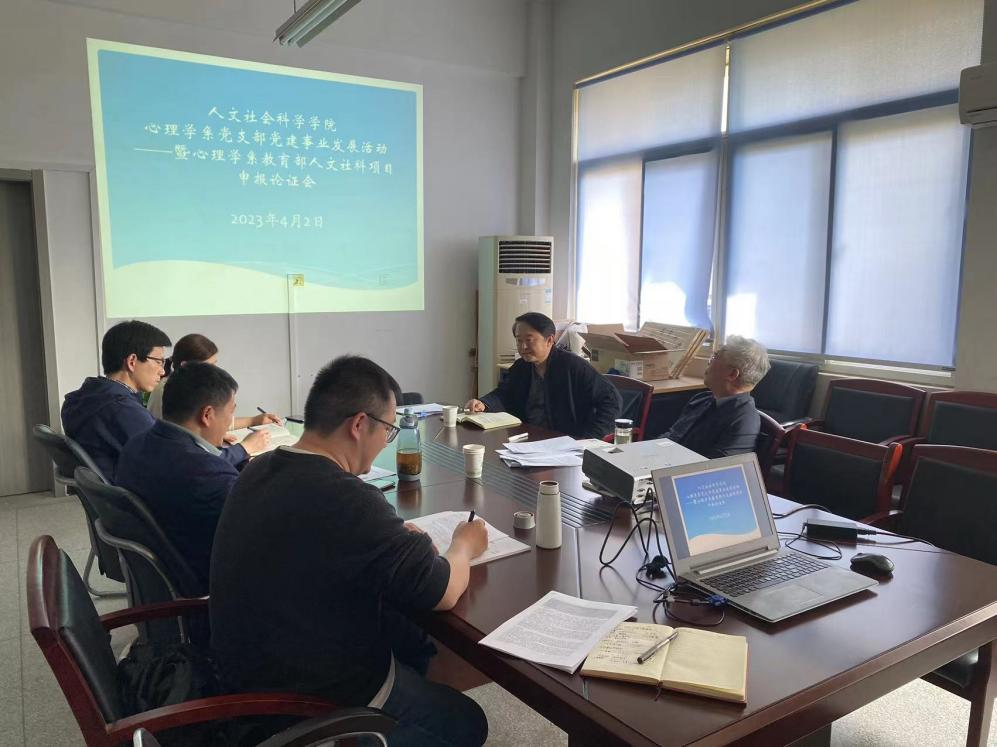 本网讯 4月2日下午,人文社会科学学院在407办公室举行2023年教育部人文社科基金项目申报论证会。校高教所所长方明、院长黄洪雷应邀出席论证会并做一对一辅导,心理学系负责人和相关申报老师参加论证会。论证会由副院长滕瀚主持。