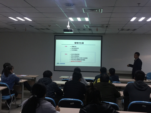 余向阳作了题为“植物内生菌微生物组对农药胁迫的响应”的学术报告,从分离植物中内生菌降解农药、农药对植物内生菌群落多样性的影响以及内生菌与宿主互作等几个方面进行介绍。与会人员就报告内容与余向阳进行了交流和讨论。