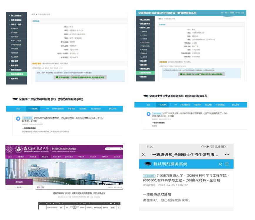成功“上岸”的6名同学,全部被985或211高校拟录取。2人保研至中国科学技术大学,4人分别成功考取中国科学技术大学、安徽大学、长安大学、南京航空航天大学。