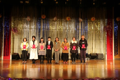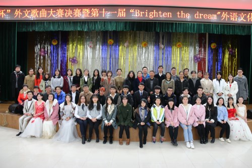 本网讯11月29日晚,“爱农杯”外文歌曲大赛决赛暨外国语学院第十一届“Brighten the Dream”外语文化节闭幕式颁奖晚会在欣苑小礼堂举行。学院领导孙志农、张剑韵、王玉明、黄庆华和各系部主任、专业课教师以及学院两办老师等参加了晚会。