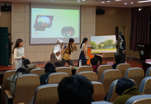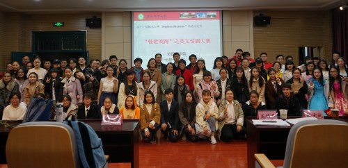 外国语学院第十一届“Brighten the Dream”外语文化节各项活动颁奖与外文歌曲大赛决赛穿插进行。本届文化节经历两个月的精心策划和准备,在往年基础上进一步精炼、创新与发展,融合了英语、日语、法语专业特色,提高了活动的整合度和专业性,丰富了活动的多样性。历时40天,共举办8大项活动,包括“法语演讲比赛”、“英文演讲比赛”、“爱农杯”英文配音大赛、导游PPT大赛、话剧大赛和“爱农杯”外文歌曲大赛等在内的各项比赛共吸引全校15个学院的近1400多人次报名参加,共产生18项个人奖和32项团体奖。活动还得到了学院各系部教师的大力支持,整个文化节共计有43名学院教师担任各项比赛的评委。