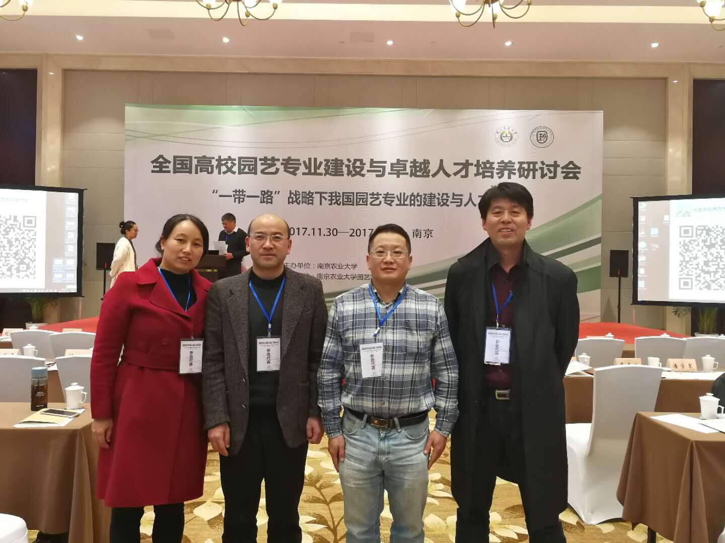 本网讯11月29日,园艺学院副院长方从兵(主持工作)、副院长裴孝伯、园艺专业负责人汪承刚教授、学院实验中心王丽芳老师一行四人,参加了由南京农业大学主办的全国高校园艺专业建设与卓越人才培养研讨会。