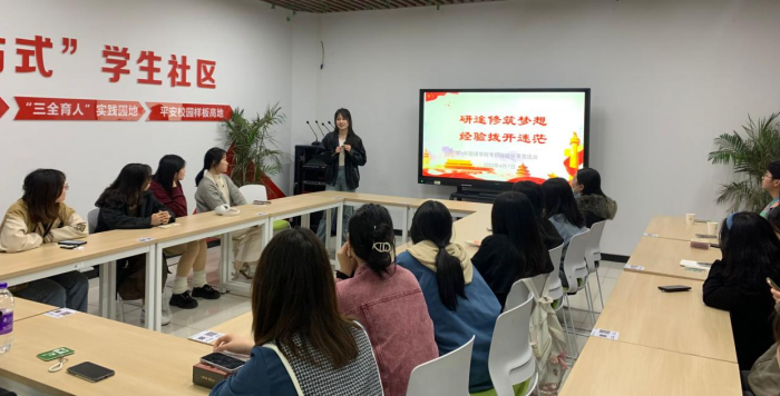 4月7日,外国语学院在一站式学生社区服务中心开展考研经验分享交流会,活动由团委负责老师主持。本次活动线上直播与线下交流同步进行,共吸引逾三百人次在线观看。学院邀请两名今年考研拟录取的学生担任主讲,围绕考前准备、搜集信息、心态调整等部分进行分享交流。
