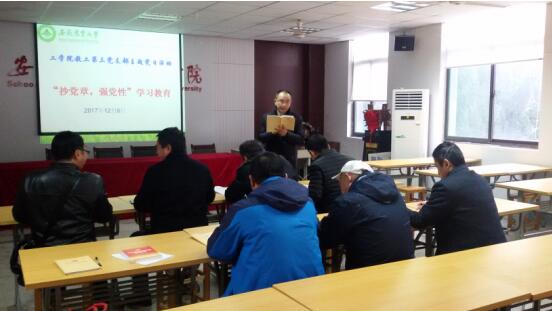 本网讯为深入贯彻学习党的十九大精神,12月6日下午工学院教工第三党支部在三教202教室开展抄党章、强党性主题党日活动。会议由支部书记许良元主持。