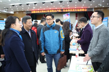 本网讯 12月9日,我校2018届畜牧水产类、生命科学类毕业生专场招聘会在欣苑食堂四楼大学生活动中心举行,校招生就业处副处长沈兆梅、动物科技学院、生命科学学院党政领导到现场指导工作。