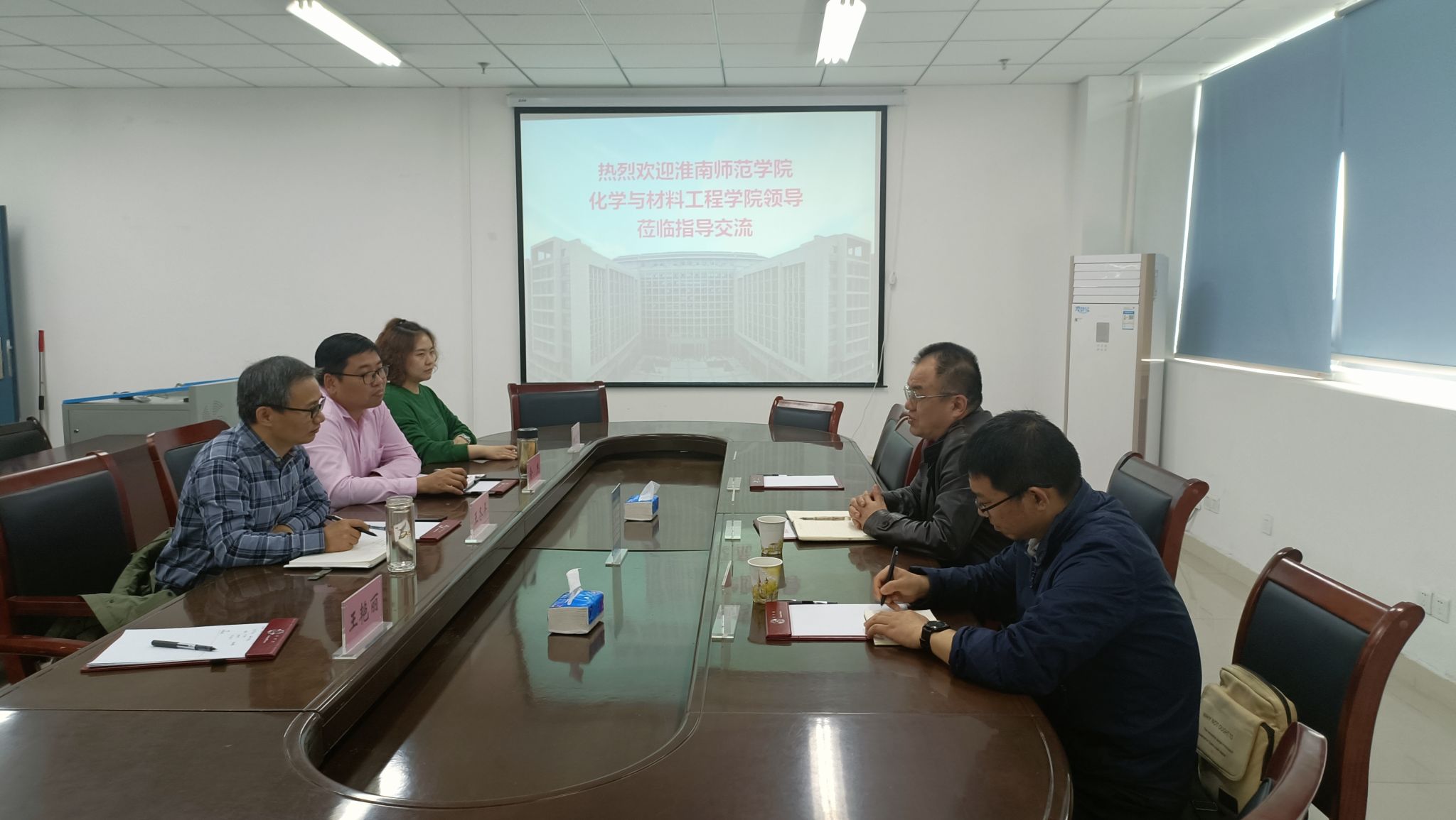 本网讯 4月14日下午,淮南师范学院化学与材料工程学院党委书记刘道富一行到理学院开展考察调研。理学院党委书记王冬平,党委副书记、院长俞杰以及两办人员谷一鸣、王艳丽参加了座谈交流会。