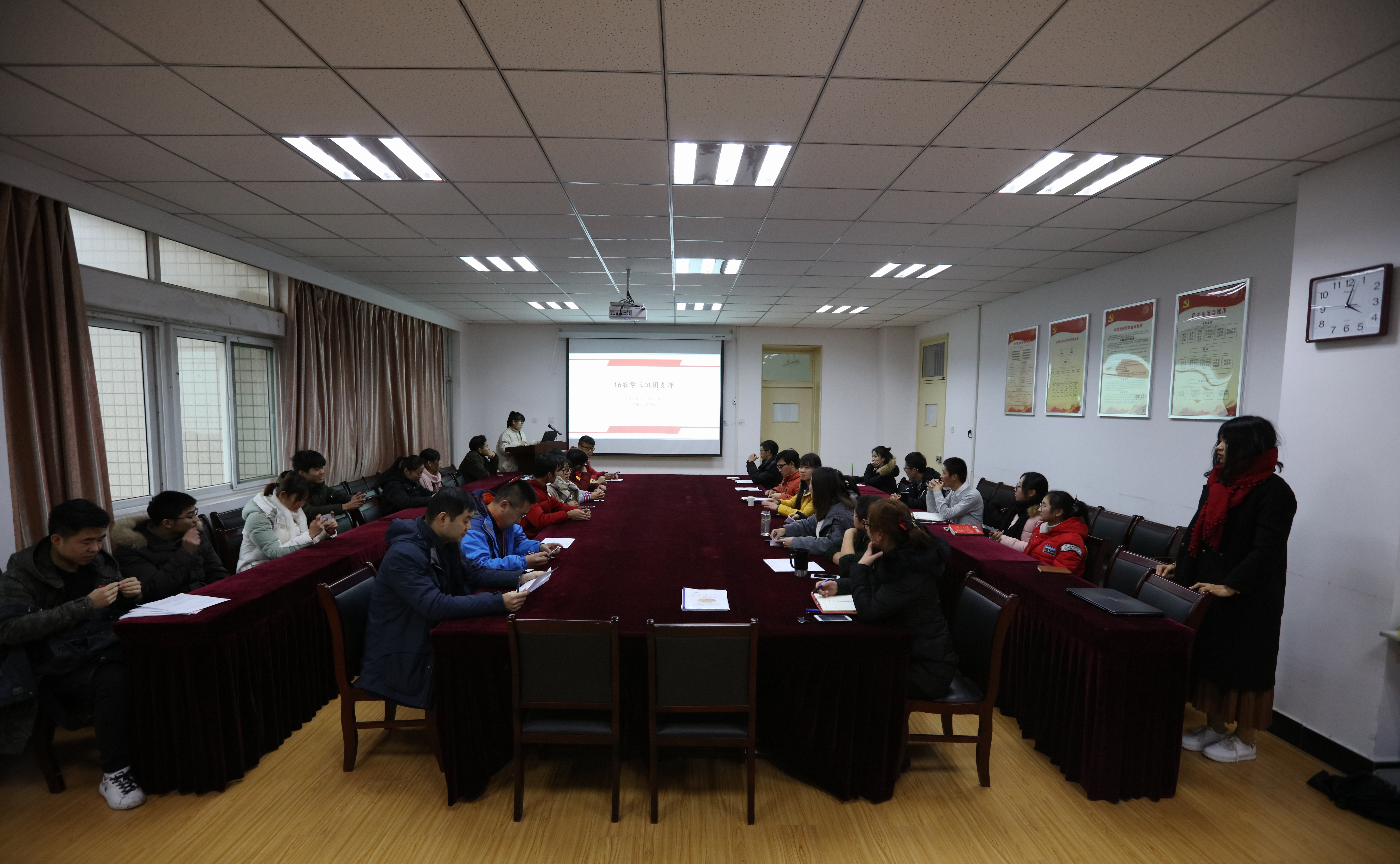 本网讯 12月14日下午, 农学院在十教537会议室举行了2017年度“先进团支部”答辩会。学院办公室主任宋超、团委书记仇飞、办公室副主任李婧以及院团委老师出席并担任评委,2015级-2017级团支部参加本次“先进团支部”评选答辩。