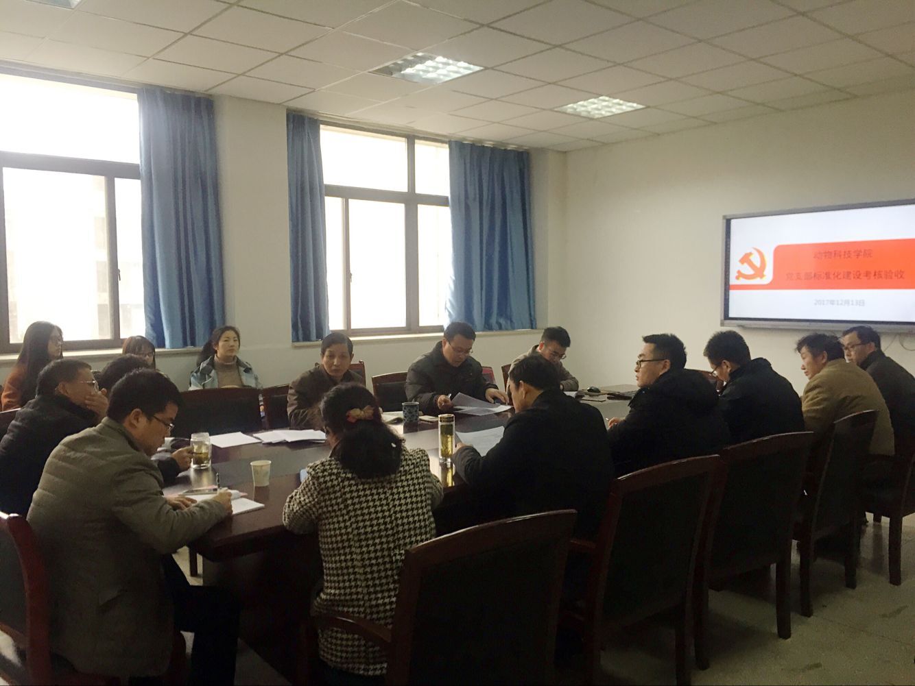 本网讯 为检验基层党支部标准化建设成效,进一步完善后续党支部标准化建设工作,12月13日,动物科技学院召开党支部标准化建设督查验收会,学院党委委员、各党支部书记、支部委员参加会议,会议由院党委书记张平主持。