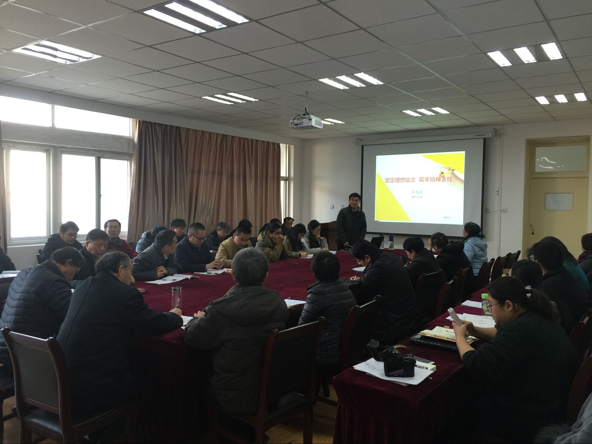 本网讯 12月20日下午,农学院学习宣传贯彻党的十九大精神党务骨干和业务骨干专题培训班开班,学院党委邀请优秀党员王晓波教授做“坚定理想信念,筑牢精神支柱”专题讲座。活动由党委书记汪凤莲主持,学院党委委员、支部书记、支委委员、系主任、实验室主任、专职辅导员参加本次培训。