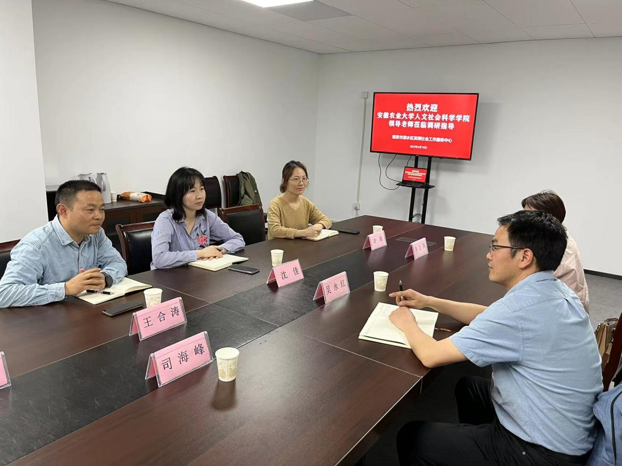 本网讯 为进一步拓宽2023届毕业生就业渠道,深化校企合作,4月19日,人文社会科学学院党委副书记吴永红带队前往南京英博社会工作服务中心、南京红石榴社会工作服务中心、江苏业力科技有限公司开展访企拓岗工作。