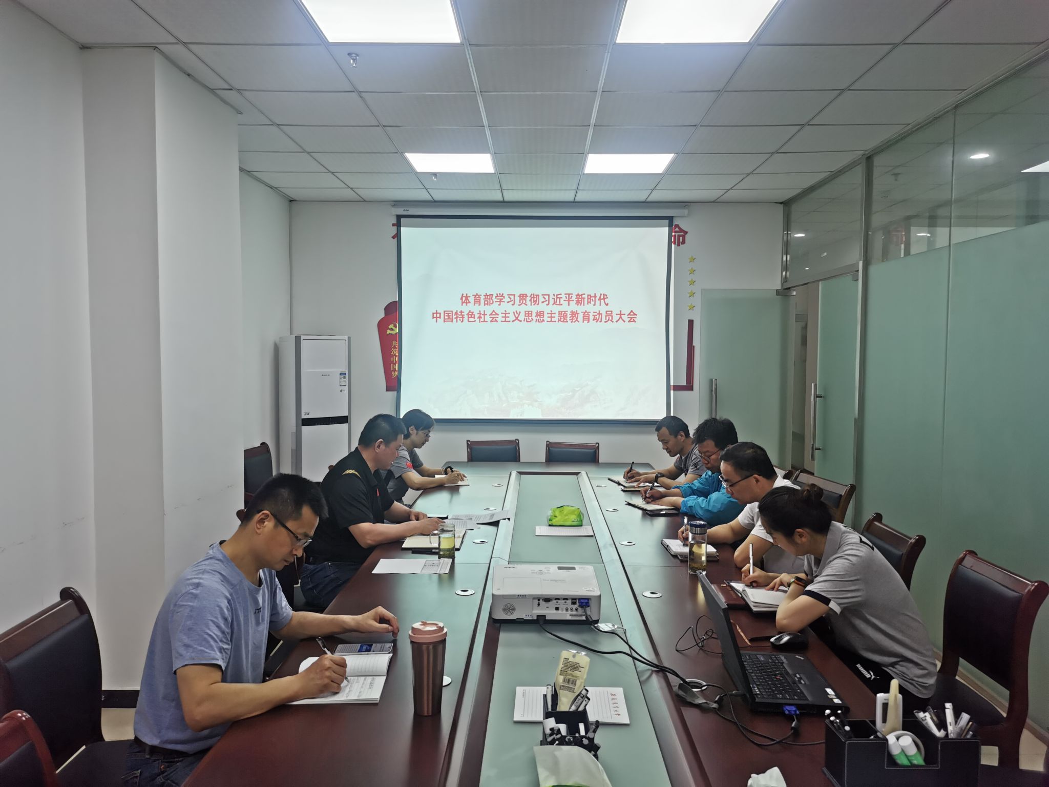 本网讯 4月19日下午,体育部直属党支部在党员活动室召开学习贯彻习近平新时代中国特色社会主义思想主题教育动员大会,支委委员、党小组组长、部分教师代表参加会议。会议由体育部直属党支部副书记尹维增主持。