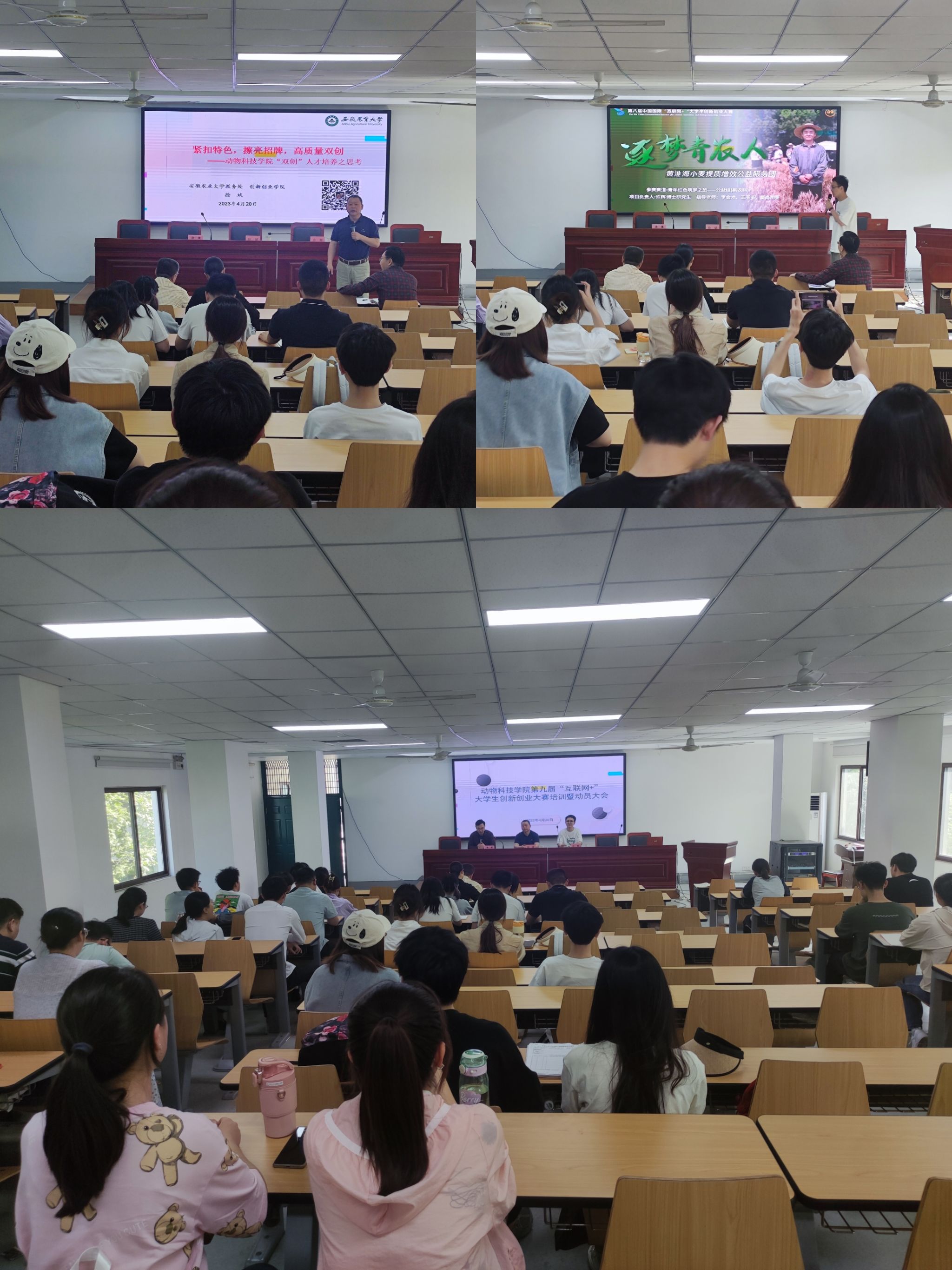 本网讯 为了落实我国高等教育领域立德树人根本任务,持续推动学院“互联网+”大学生创新创业大赛参赛工作,充分调动学院师生参加大赛的积极性。4月20日,动物科技学院在学院318教室举行第九届“互联网+”大学生创新创业大赛动员暨培训会。会议邀请校创新创业学院院长兼教务处副处长徐斌教授、第八届中国国际“互联网+”大赛国家级金奖获得者农学院许辉博士出席会议并作培训,会议由学院副院长涂健主持,学院师生代表参加了会议。