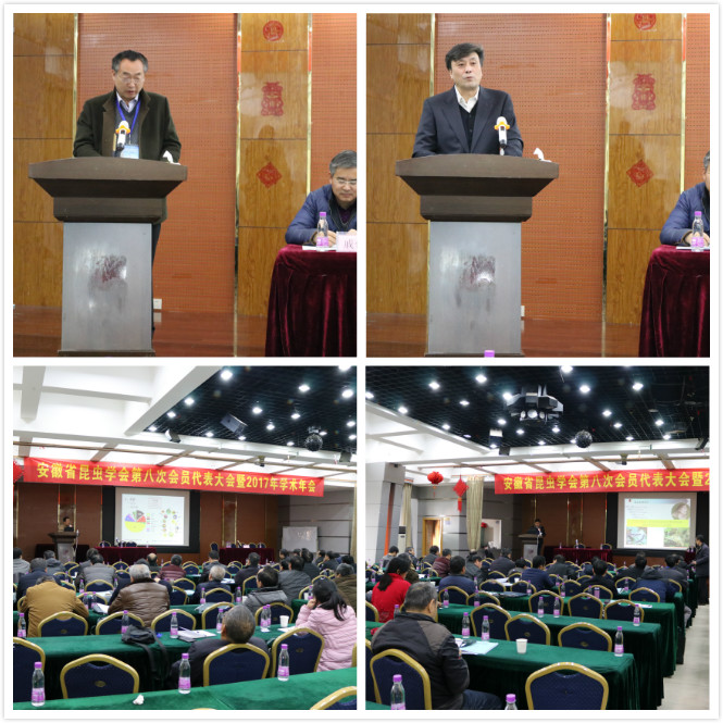 本网讯 安徽省昆虫学会第八次会员代表大会暨2017年学术年会于2017年12月22-23日在合肥市名园大酒店召开,此次会议由安徽省昆虫学会主办,安徽农业大学植物保护学院协办。会议得到了安徽省科学技术协会、安徽省民间组织管理局及依托单位安徽农业大学植物保护学院的支持,来自中国科学技术大学等7所高校、安徽农业科学院、省植保总站、省林业病虫防治检疫局及全省16个地市从事科研、教育和应用推广工作的120多名昆虫学工作者及在读研究生出席了这次年会。