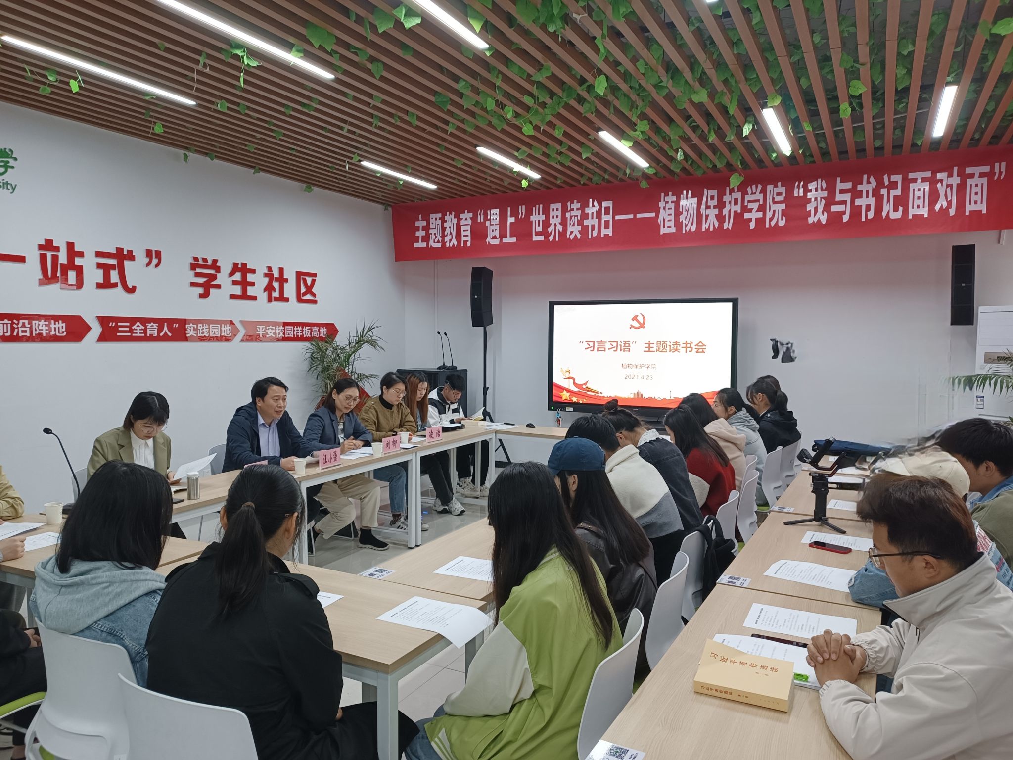 4月23日,植物保护学院在“一站式”学生社区开展“我与书记面对面”暨世界读书日活动。学院党委书记刘柳、学校马克思主义学院习近平新时代中国特色社会主义思想概论党支部书记王晶晶老师出席活动。活动由学院党委副书记汪小强主持。学院各学生党支部支委、2022级学硕班研究生参加活动。