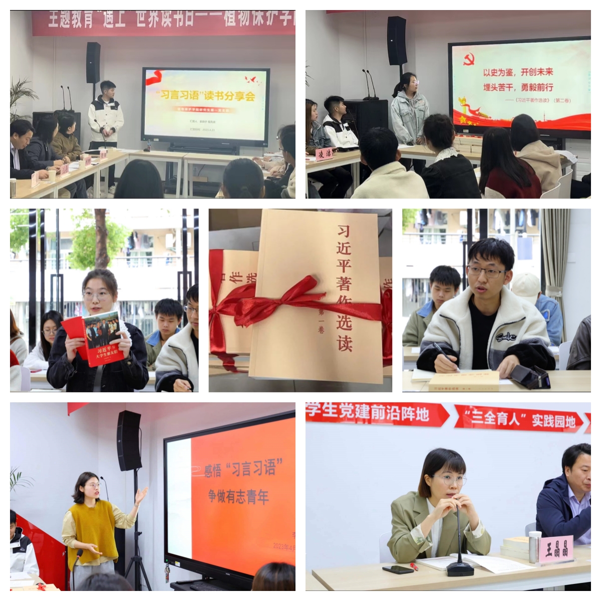 最是书香能致远,腹有诗书气自华。《习近平著作选读》第一卷、第二卷以及《习近平新时代中国特色社会主义思想学习纲要(2023版)》等书籍一一摆放桌前。研究生三个党支部、本科生两个党支部、22级学硕班团支部分别就学习体会,从新时代中国共产党的中心任务,以史为鉴、开创未来,全面从严治党探索出依靠党的自我革命跳出历史周期率的成功路径,努力实现高水平科技自立自强,掌握马克思主义立场观点方法,坚守植保使命、服务国家粮食安全,争做有志青年等方面,依次作了“习言习语”主题读书分享。王晶晶讲述了世界读书日的由来,同时结合自身学习主题教育指定书目的体会,对各支部的读书分享作了精心点评。