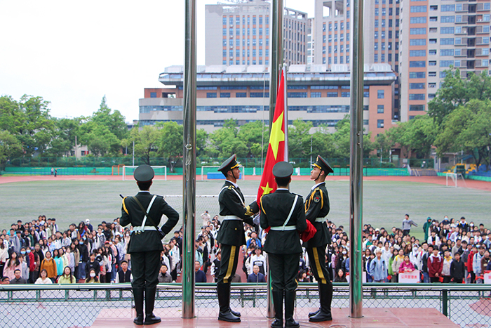 上午7时,仪式准时开始。国旗护卫队的队员们迈着整齐的步伐,目光坚毅,护送国旗入场。庄严的国歌奏响,五星红旗冉冉升起。全体师生肃穆而立,对缓缓升起的国旗行注目礼,满怀对祖国无限的热爱和崇高的敬意。