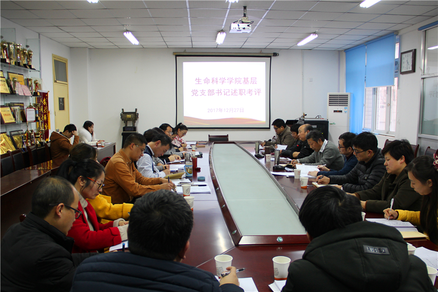 本网讯 按学校党委统一部署,根据《关于做好2017年度基层党建述职评议考核工作的通知》(校党字【2017】80号)文件精神,12月27日下午,生命科学学院召开基层党建述职评议工作会议,会议由学院党委书记朱绍友主持,学院党政领导、党委委员、各基层党支部书记及支委、师生代表参会,校统战部部长、机关第一党总支书记刘惠东,校纪委秘书兼信访及干部监督科科长孙辉参会并指导。