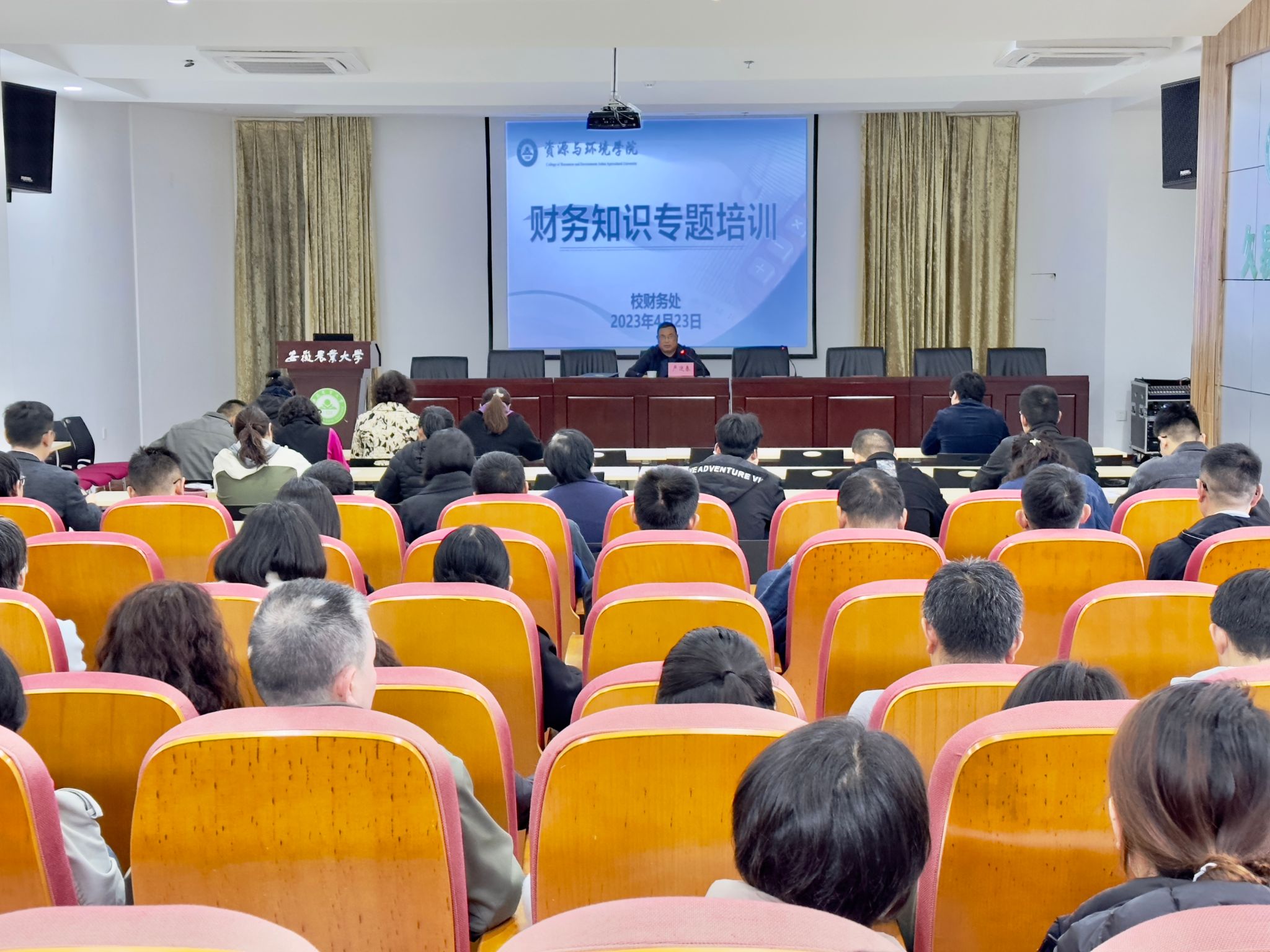 本网讯 聚焦扎实开展主题教育,进一步深化“我为师生办实事”理念和举措,不断丰富教职工财务知识,提高财务管理水平, 4月23日下午,资源与环境学院邀请财务处处长严迎春及财会骨干在中西部综合楼久易报告厅作财务知识专题培训。培训会由学院党委副书记、纪委书记、副院长姚洪章主持,学院全体教职工参加培训。