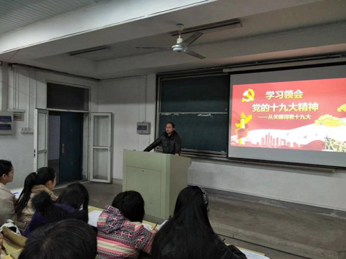 此次报告中,孙福同志首先向同学们介绍了此次成立“大学生骨干学习小组专题学习班”的背景、内容。随后,对十九大报告中的七大关键词一一进行了解读。最后,他也要求全院学生骨干严格按照学院部署完成学习培训既定计划,学习讨论结合自身发展和班级学院工作实际,认真写好小结,将学习宣传贯彻党的十九大精神推向深处和落到实处。