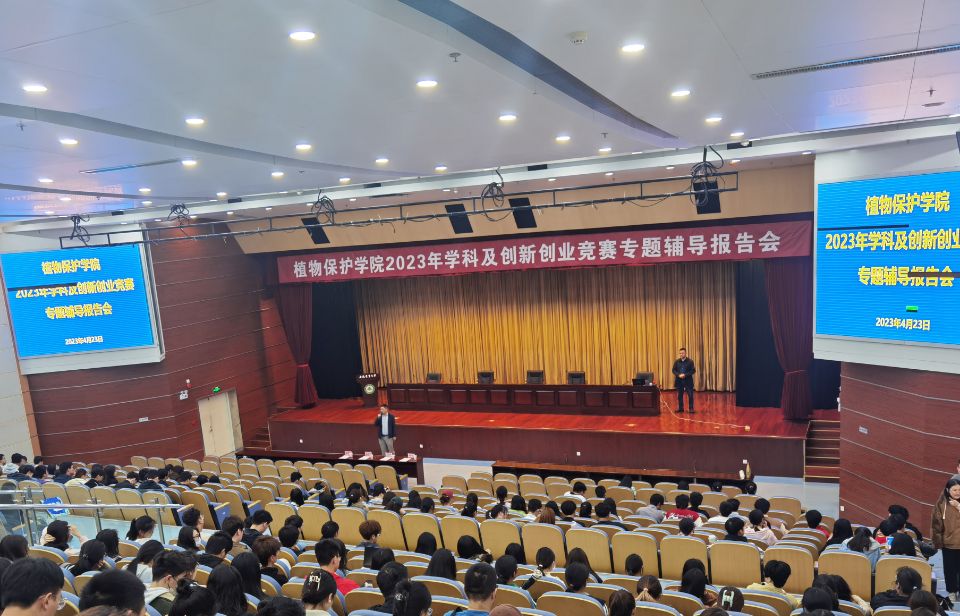 本网讯 4月23日下午,植物保护学院在图书馆第一报告厅举办2023年学科及创新创业竞赛专题辅导报告会,创新创业学院常务副院长徐斌、组织部丁朝阳受邀作专题辅导报告。学院党委副书记汪小强及大一大二年级全体本科生参加会议。会议由学院副院长唐庆峰主持。