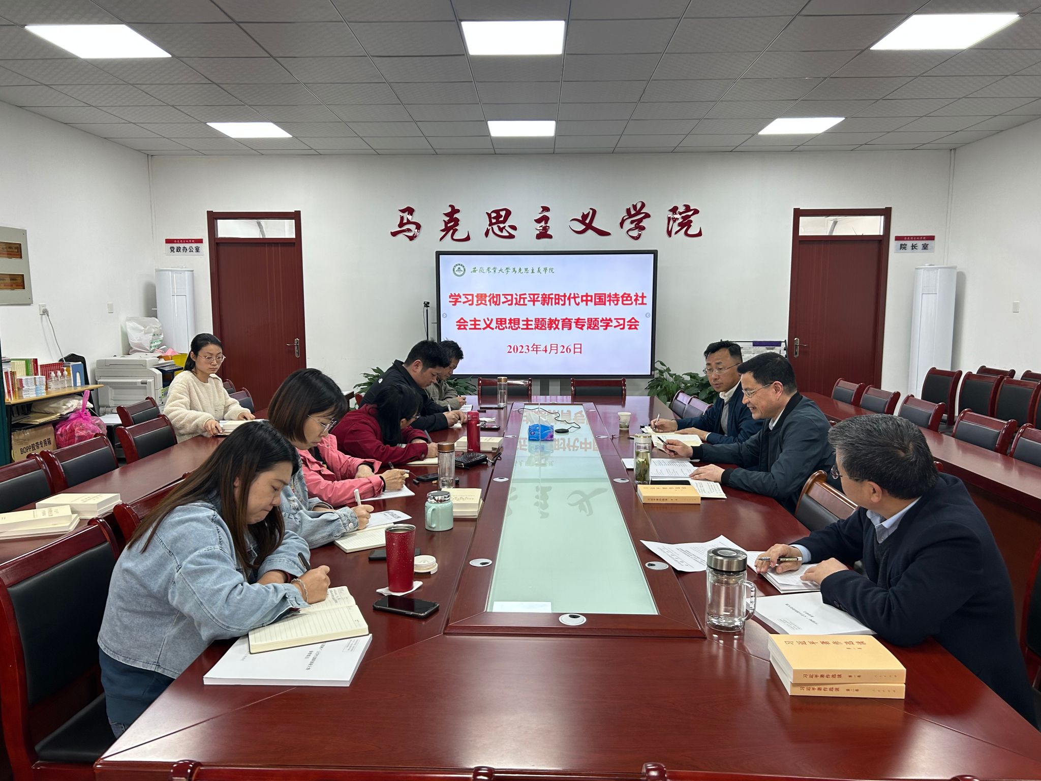 本网讯 4月26日下午,马克思主义学院在人文楼302室召开学习贯彻习近平新时代中国特色社会主义思想主题教育专题学习会。会议由院党委书记孙超主持,院党委副书记、院长方国武,党委副书记、纪委书记、副院长袁修雨以及学院各党支部书记,各教研部、中心主任等参加了会议。