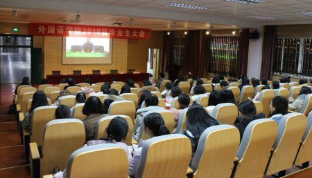 学院还将2018届毕业生刚到校时学长迎新、军训、中秋联欢会、迎新晚会等照片制作成视频在会上播放,和毕业生们一起回顾精彩瞬间,一张张照片引得学生们感叹不已。外国语学院高度重视毕业生就业工作,为确保毕业生顺利完成学业,提升毕业生就业质量,学院连续多年召开全院毕业生大会,提前谋划、精心组织,使全体毕业生明确了毕业和就业的主要任务,为确保毕业生工作顺利进行打下了坚实基础。(刘莉 通讯员:林婷婷)