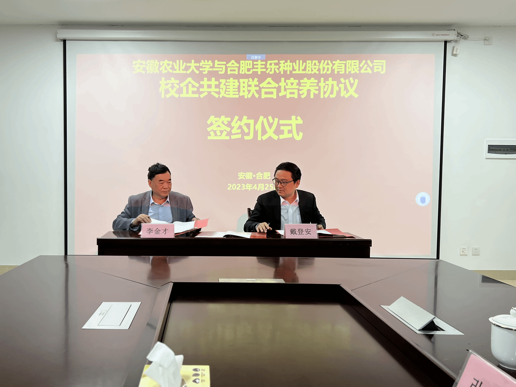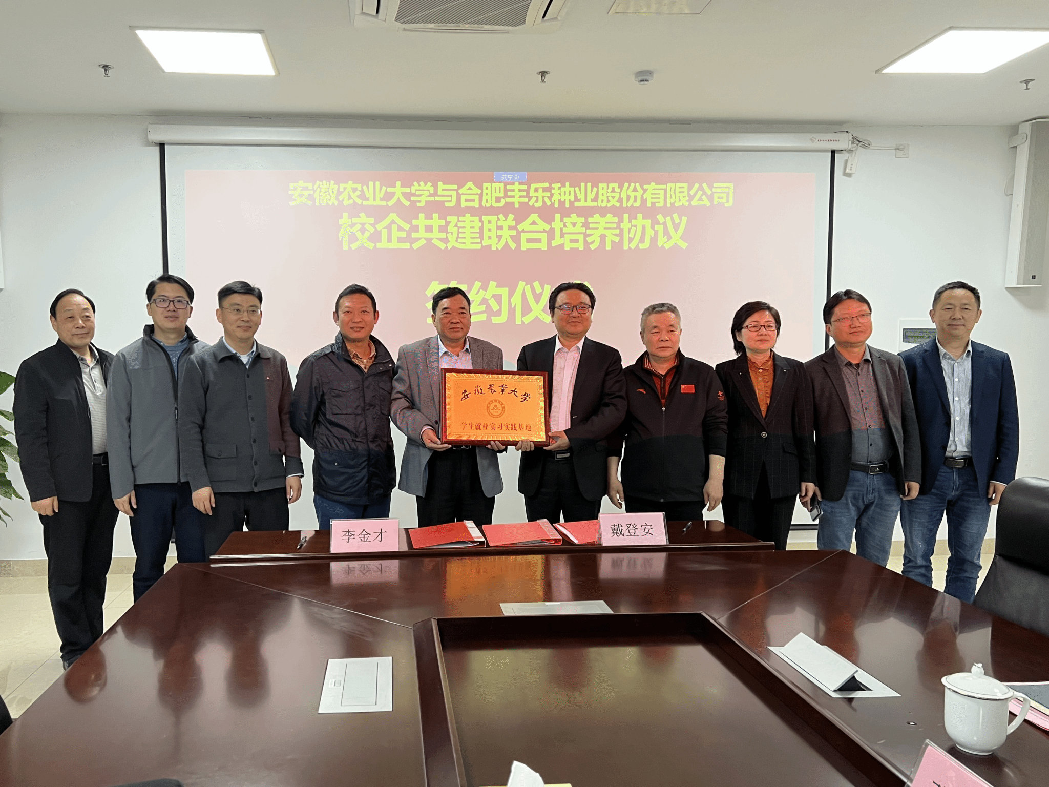 会后,李金才与戴登安共同签订了《安徽农业大学与合肥丰乐种业股份有限公司校企共建联合培养协议》,并进行“安徽农业大学学生就业实习实践基地”授牌。(作者:史策 一审:范宇 二审:吕大鹏 三审:吴渭)
