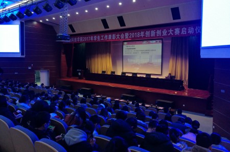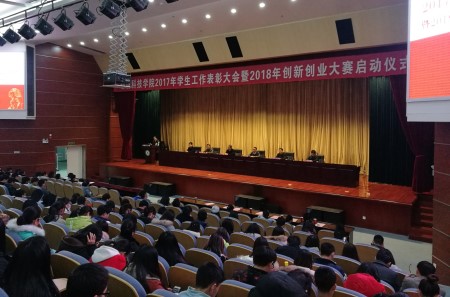 大会在庄严的国歌中隆重开幕,学院党委书记张平在致辞中充分肯定了学院2017年学生工作特别是创新创业工作所取得的成绩。他指出这些成绩的取得得益于校党委、校行政的正确领导,得益于校直各部门的大力支持、得益于学院全体师生的共同努力。他表示大学是正值青春年华,正是充实自己、积累自己、提高自己的阶段。他希望同学们要不断学习,勇于实践,加强合作,全面发展;要严守校规校纪,脚踏实地,戒骄戒躁;要在人格的自我塑造、身心的自我磨砺、能力的自我开发上严格要求自己,紧跟时代步伐,为将来步入社会,创造自己人生的辉煌做好充分的准备。