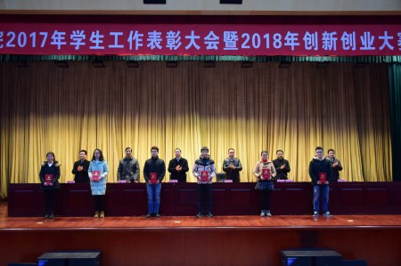 表彰大会上,与会领导为学院在2017年获得国家奖学金、国家励志奖学金、“三风建设十佳标兵”、企业奖助学金、文化体育类、社会实践类和创新创业类获奖同学代表颁奖。获奖同学代表胡金华分享了自己的收获。她鼓励同学们要努力学习,踏实肯干,不要随遇而安,得过且过,要寻求突破口,勇于探索,主动掌握自己的未来。