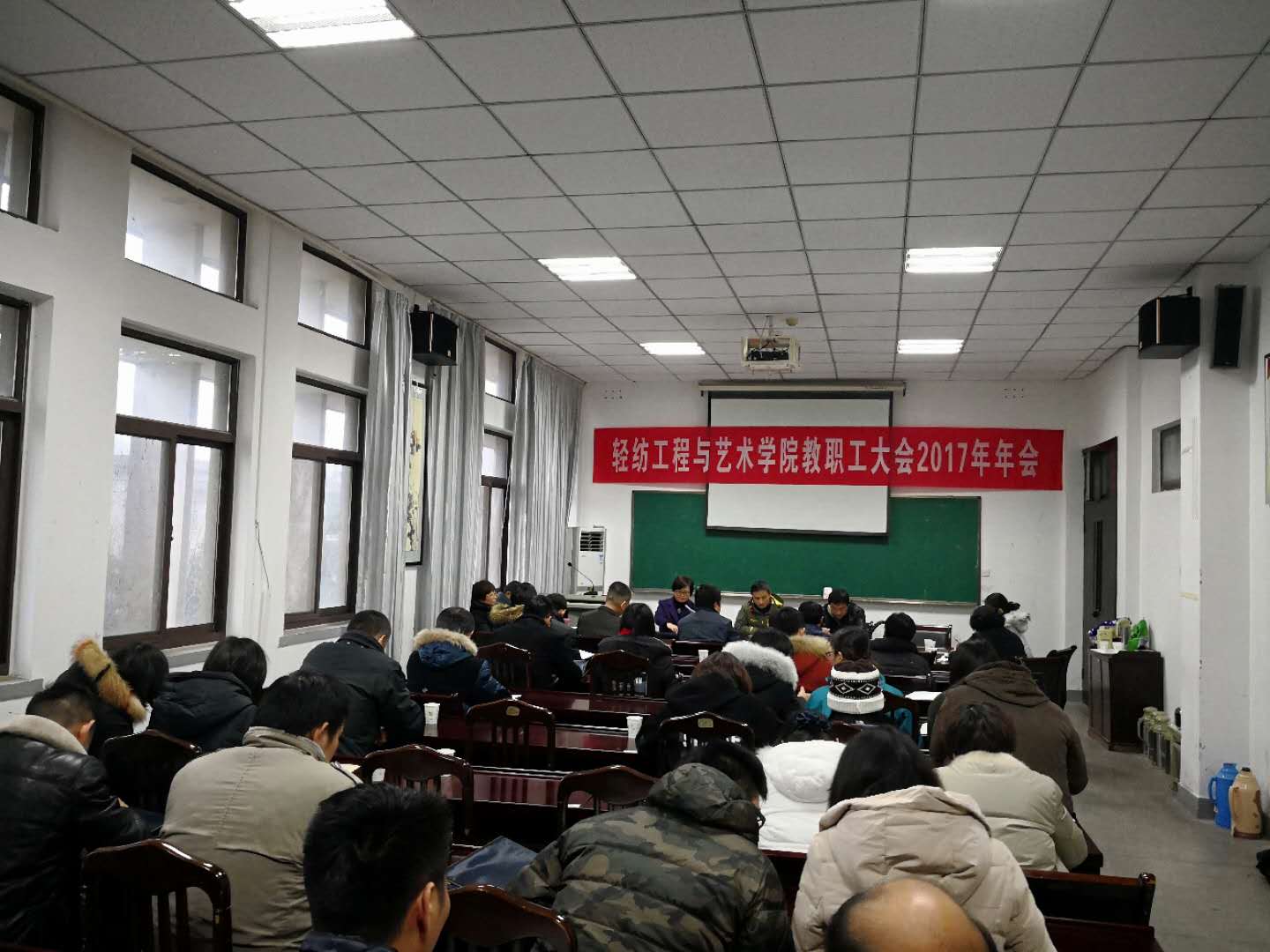 本网讯1月3日下午,轻纺工程与艺术学院工会在院会议室召开教职工大会2017年年会,全体教职工参加了本次会议。本次会议以习近平新时代中国特色社会主义思想为指导,进一步落实校六届五次党代会暨六届三次教代会会议要求,总结2017年学院工作,明确2018年的工作思路和主要任务。会议由院党委副书记吕剑秋主持。
