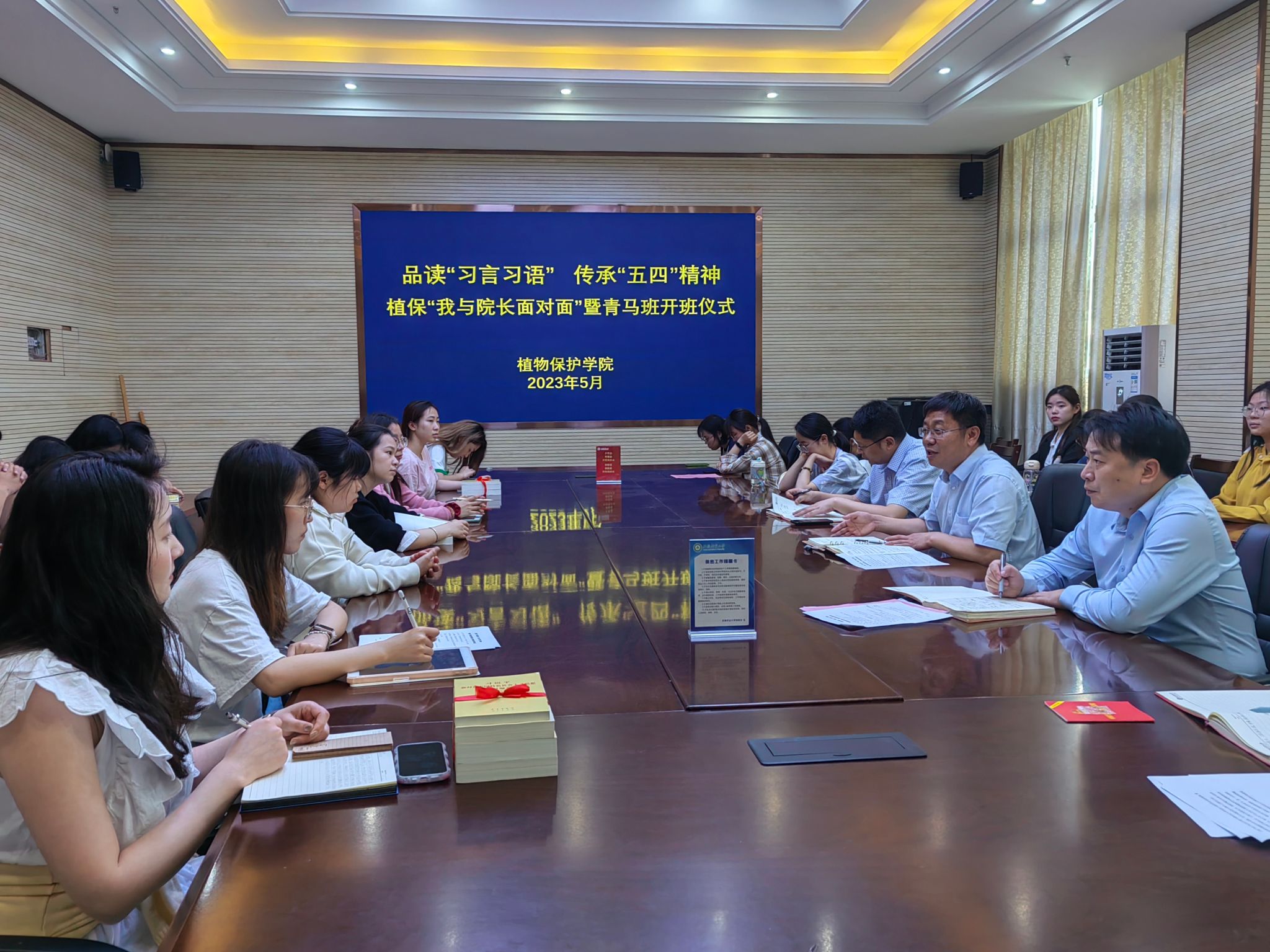 本网讯 在学院上下深入开展学习贯彻习近平新时代中国特色社会主义思想主题教育之际,5月4日中午,植物保护学院在中西部综合楼1213会议室举办品读“习言习语” 传承“五四”精神——“我与院长面对面”暨青马班开班仪式。学院常务副院长潘月敏、副院长唐庆峰出席会议。学院分团委委员、院级青马班学员、学生组织学生干部参加会议。会议由学院党委副书记、纪委书记、副院长汪小强主持。