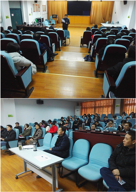 本网讯 1月3日下午,人文社科学院党委在人文楼602报告厅召开了全体教职工大会,学院5位处级领导干部进行了公开述职。党委书记孙超代表学院班子成员向全体教职工报告了学院一年来的党建工作,方章东、黄洪雷、方国武、吕大鹏4位处级领导分别围绕学院事业发展、学科建设、教学科研、学生工作等方面以及个人履行“一岗双责”的情况对一年来学院的工作进行述职。