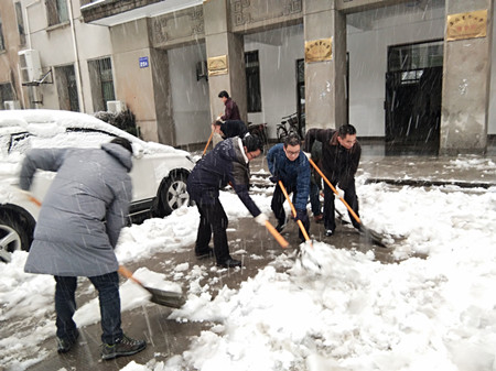 会后,学院青年教职工在学院领导的带领下,清理铲除了二教门前及香樟路路面积雪。(单国雷 通讯员:赵婷)