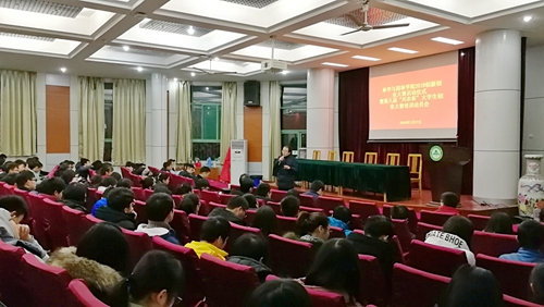 本网讯为深入贯彻党的十九大精神,全面普及创新创业知识,努力把创新创业观念融入林院学子的学习生活,1月17日晚,我院在林学楼报告厅成功举办2018创新创业大赛启动仪式暨第八届“兴农杯”培训动员会。院党委副书记、副院长江正君,副院长徐斌、项目指导老师、院团委老师、优秀学生代表及大创项目成员参与了本次会议。