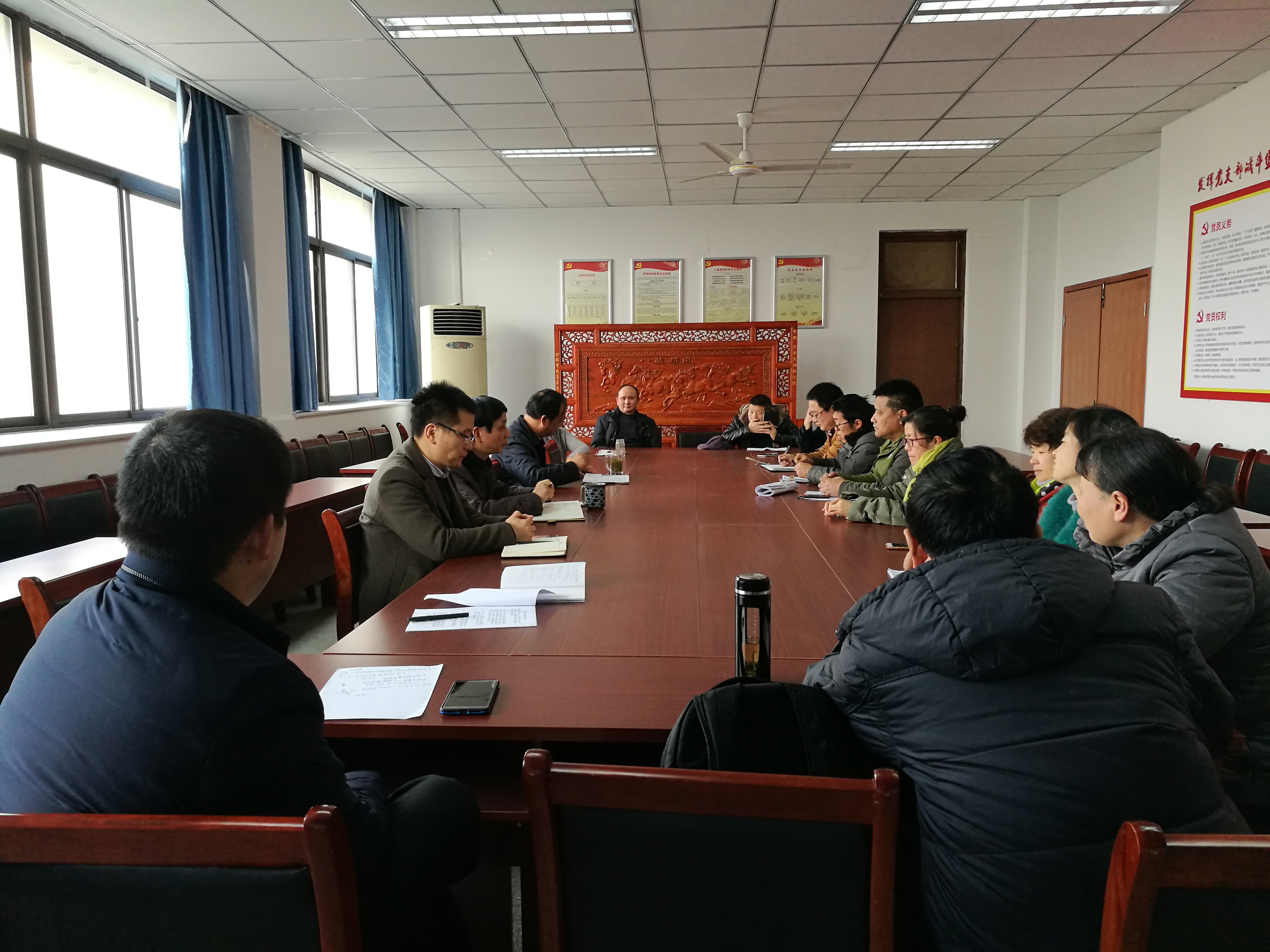 会上,张平带领大家认真学习了《转发省委组织关于组织召开2017年度组织生活会和开展民主评议党员的通知》(校党字〔2018〕2号)、《关于召开2017年度党员领导干部民主生活会的通知》(校党字〔2018〕3号)文件精神,并根据文件要求先后学习了习近平总书记在中共中央政治局民主生活会上的重要讲话精神和习近平总书记在新进中央委员会的委员、候补委员和省部级主要领导干部学习贯彻习近平新时代中国特色社会主义思想和党的十九大精神研讨班开班式上重要讲话精神以及《中共安徽省委关于贯彻落实〈中共中央政治局关于加强和维护党中央集中统一领导的若干规定〉的意见》、《中共安徽省委关于贯彻落实中央八项规定精神深入推进作风建设的实施细则》等,并摘选学习了十九大报告关于“八个明确,十四个坚持”方面的内容。