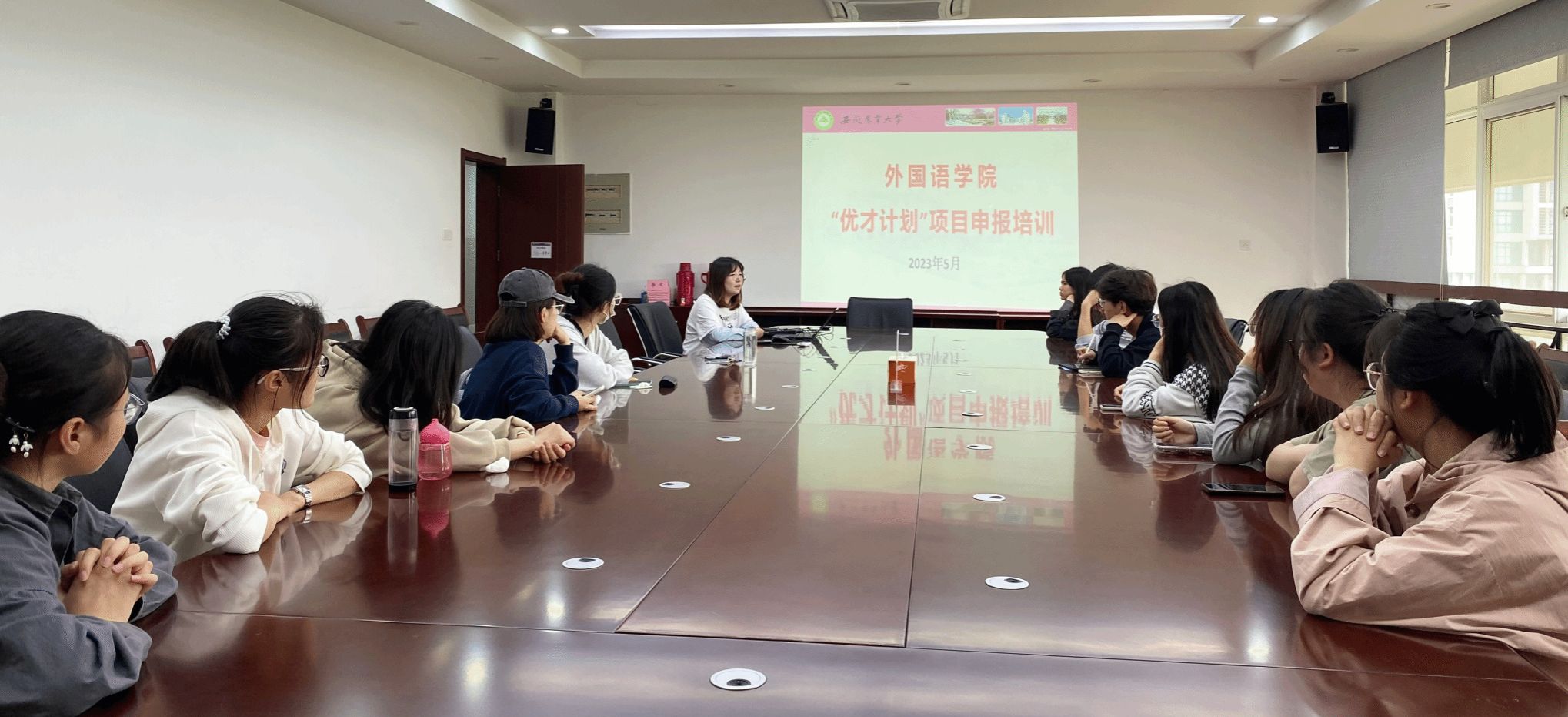 本网讯 为帮助家庭经济困难学生深入了解“优才计划”学生发展支持项目,鼓励其立足专业、积极实践,不断提升综合素质与竞争优势,5月10下午,外国语学院在外语楼506会议室召开了“优才计划”学生发展支持项目申报培训会,学院部分家庭经济困难学生参加了培训会。