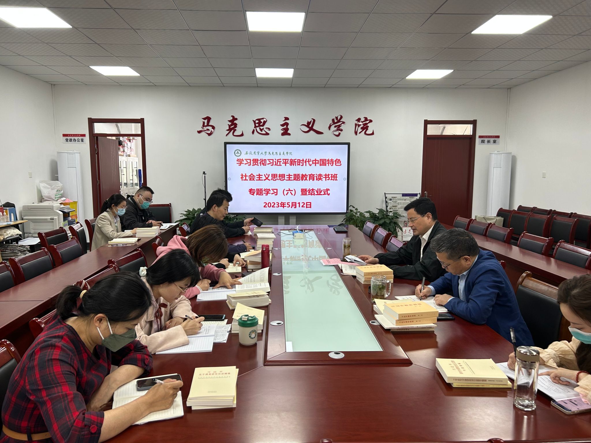 本网讯 5月12日,马克思主义学院在人文楼302会议室召开学习贯彻习近平新时代中国特色社会主义思想主题教育读书班第六次专题学习暨结业式,学院党委书记孙超主持会议。学院党委副书记、纪委书记、副院长袁修雨,党委委员、党支部书记参加学习。