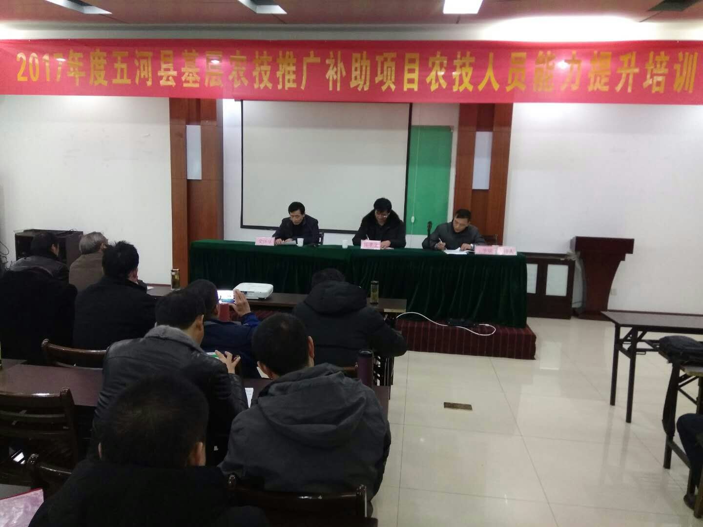 本网讯:1月17日至21日,2017年度五河县基层农技推广补助项目农技人员能力提升培训班在我校成功举办。五河县农业委员会总农艺师陈孝文,继续教育学院副处级调研员史怀乐出席开班典礼并讲话,五河县农委科教部门、农机部门、纪检部门、财政部门的负责同志以及农业系统的农技推广人员参加培训。