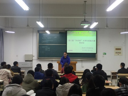 本网讯 1月19日下午,资源与环境学院在九教120举办校第八届“兴农杯”大学生创客大赛培训会,邀请丁朝阳、唐俊等创新创业优秀指导教师为学院各参赛团队进行现场指导。资环学院党委副书记张晓伟、各参赛团队全体学生参加培训会,会议由学院团委老师主持。