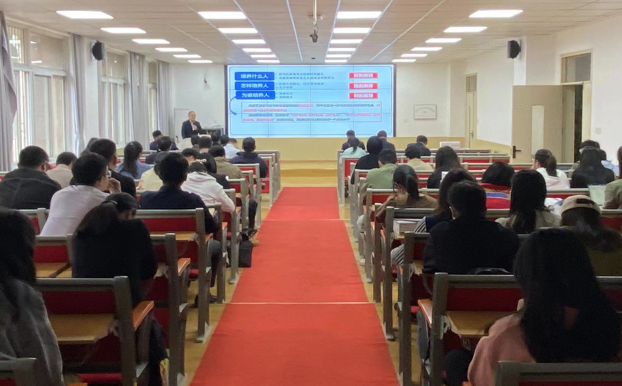 蔡德军以《深入实施新时代人才强校战略服务农业强国建设》为题,从怎么看:“三位一体”战略部署与农业强国建设;怎么办:高等学校贯彻落实的担当与思考;怎么干:打造人才高地,服务农业强国建设三个方面讲述专题党课。