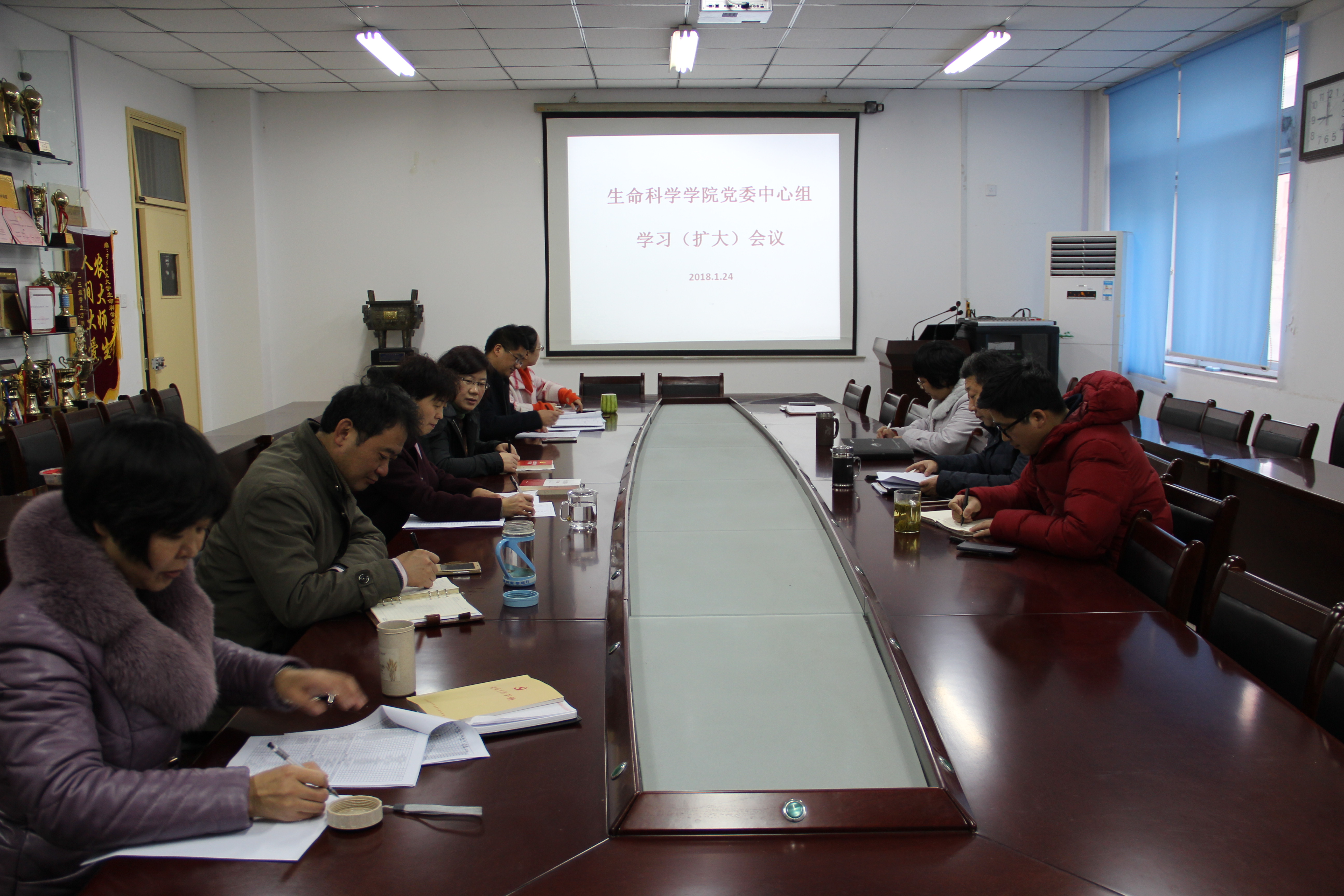 本网讯1月24日上午,生命科学学院党委召开中心组(扩大)学习会议,专题学习研讨习近平新时代中国特色社会主义思想,进一步统一思想、深化认识,为开好学院班子2017年度民主生活会打牢思想基础。学院党委委员、支部书记、科级以上干部参加,会议由学院党委书记朱绍友主持。